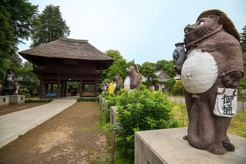 The “Bunbuku Chagama" mentioned in Sekien’s description is of course the famous fairy tale about a tanuki who transformed into a tea pot but got stuck in that form and then becomes a street performer for his keep. The story has been well known for generations and has been used in story books & other media for a very long time now. What many don't realize is that Bunbuku was inspired by the story of “Moriniji-no-Okama” from Moriniji temple in what is modern day Gunma prefecture, their version is about a Tanuki who took the form of a monk, he had a special lucky kettle for making tea that could remain hot for six or seven days, it supposedly brought fortune & other luck (Career advancements, Long Life, etc) to those that drank from it! The Lucky kettle is still displayed in Moriniji Temple to this day, the mountain & temple grounds are also decorated with a TON of vintage tanuki statues. - Toriyama even had an entry for Moriniji-no-Okama in his earlier books!