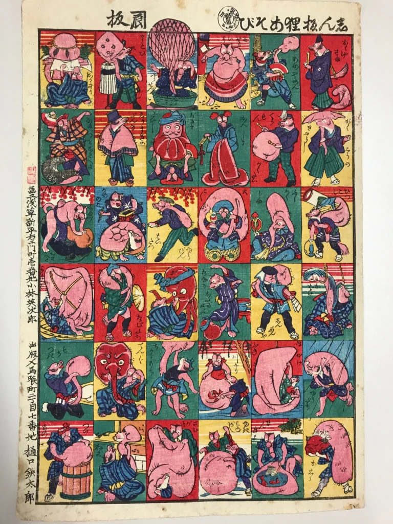 • Tanuki Puns Galore in this entry! - The Tama river is a major river which flows through Tokyo, The word “Tama” (玉) means “jewel” as well as “ball” in Japanese. Coincidentally, both these words can be used to refer to male genitalia in Japanese just as they can be in English. And if you know tanuki you are probably well aware of their fabled shapeshifting scrotums. (I have friends from Japan who are equally as baffled about the tanuki’s magic sack as many Westerners but, in a nutshell, this bit of folklore stems from artisans using that particular part of the tanuki’s stretchy skin to pound out gold leaf in ancient times.) Tanuki are often said to be able to stretch their balls out to the size of 8 tatami mats. Tatami mats are straw mats used in floors in traditional Japanese buildings. They’re also commonly used colloquially as a measurement. A single tatami mat is about 0.9 by 1.8 metres or 6 x 3 feet. 8 tatami mats is a typical room size and is called “hachi-jo” in Japanese. “Hachijo kinu” is 8 tatami mats worth of silk and also a famous brand of silk crafted on the Hachijo Islands. (More about that below.)