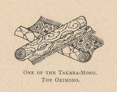 • The Antiques in Question: Hachijo silk is a fine silk-fabric generally used for top of the line kimonos, it’s famously produced on hachijo-jima (part of the Izu island peninsula) The cloth is usually dyed naturally with local, plant-based dyes. Folklore has it that the golden-yellow color & patterns were protective wards against disease & that it could help keep evil spirits away! (see my section on charms for some similar folkloric concepts.) For a while throughout the Edo period, this silk was seen as so valuable that it was accepted as payment for land taxes in place of the usual yield of crops! At first the cloth was used for high quality clothing for imperial royalty, nobles, doctors and aristocrats, but as time went on it grew popular among common folk & eventually came to be used in everyday wear. In any case, it would have certainly been seen as a big deal to waste something so fine! No wonder the unused bolt became a Tsukumogami!