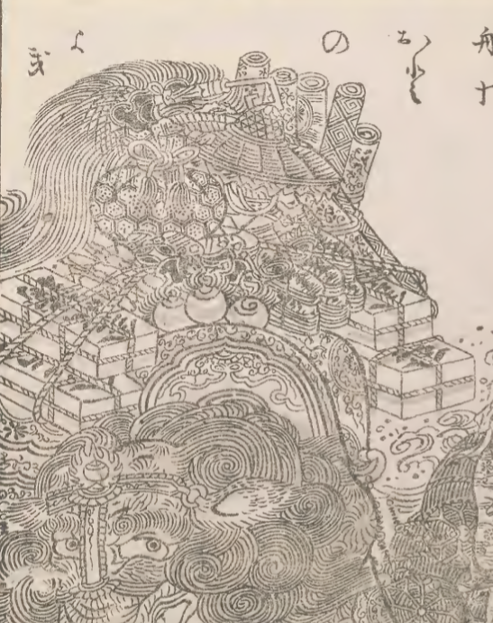 …also I can't help but point out that there’s perhaps also a nod towards the Shichifukujin (lucky gods) here as well? - Or perhaps, rather that Kinutanuki as a concept might take some inspiration from the ‘Takaramono’ (The magical/valuable treasures which the Shichifukujin bring aboard their ship for new years.) - I mention this as On the first and final few pages of Gazu Hyakki Tsurezure Bukuro where at the start of the book the Shichifukujin are seen asleep, and by the end of the series they’re all awake; among the other takaramono (treasures/”precious things”) several rolls of fabric are seen being carried on the back of an Elephant, which is being led by Daikoku & Ebisu. (The text on said page implies that they’re being loaded aboard the Shichifukujin’s Treasure Boat! (See: “Takarabune”) in particular, These valuable rolls of luxurious silk are often called the “Orimono” or “Rolls of Brocade” and are said to be symbolic of the nobles, and thus, luxury – as I’ve already explained above, hachijo silk was favored by the nobles for some time! So, I suppose it stands to reason that Golden Hachijo silk could also be among this collection of valuable fabrics as well! – (If not a direct reference, it at least feels like a nod towards the scene at the end of the book.)