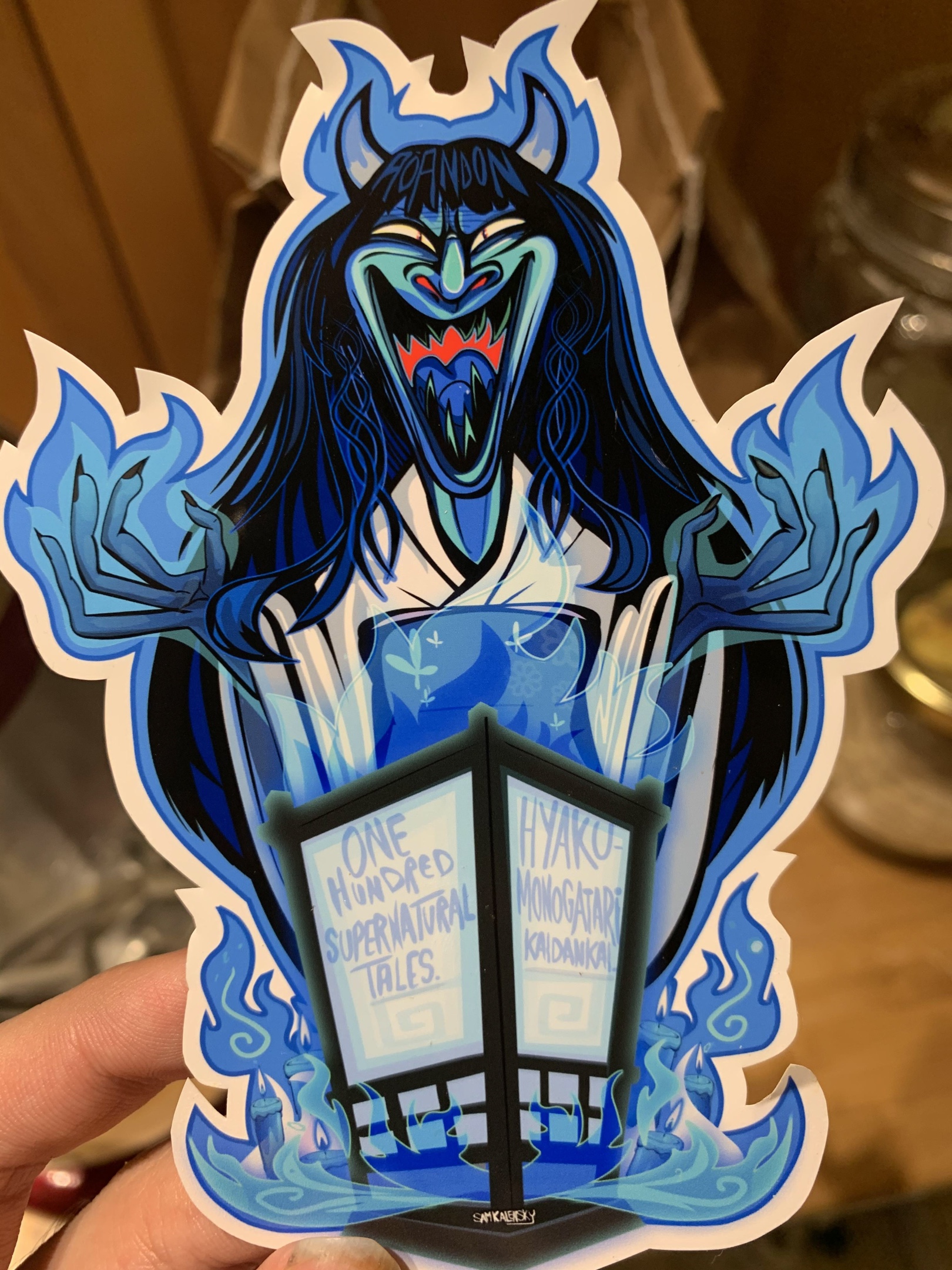 Sticker Art by @Samkalensky (yo thats me!) – Part of my Night parade of 100 Demons – Yokai & Japanese folklore sticker collection, weather-resistant 4″ Glossy sticker. Check my shop & follow @samkalensky for many more! – this was to celebrate reaching my 100th yokai sticker!