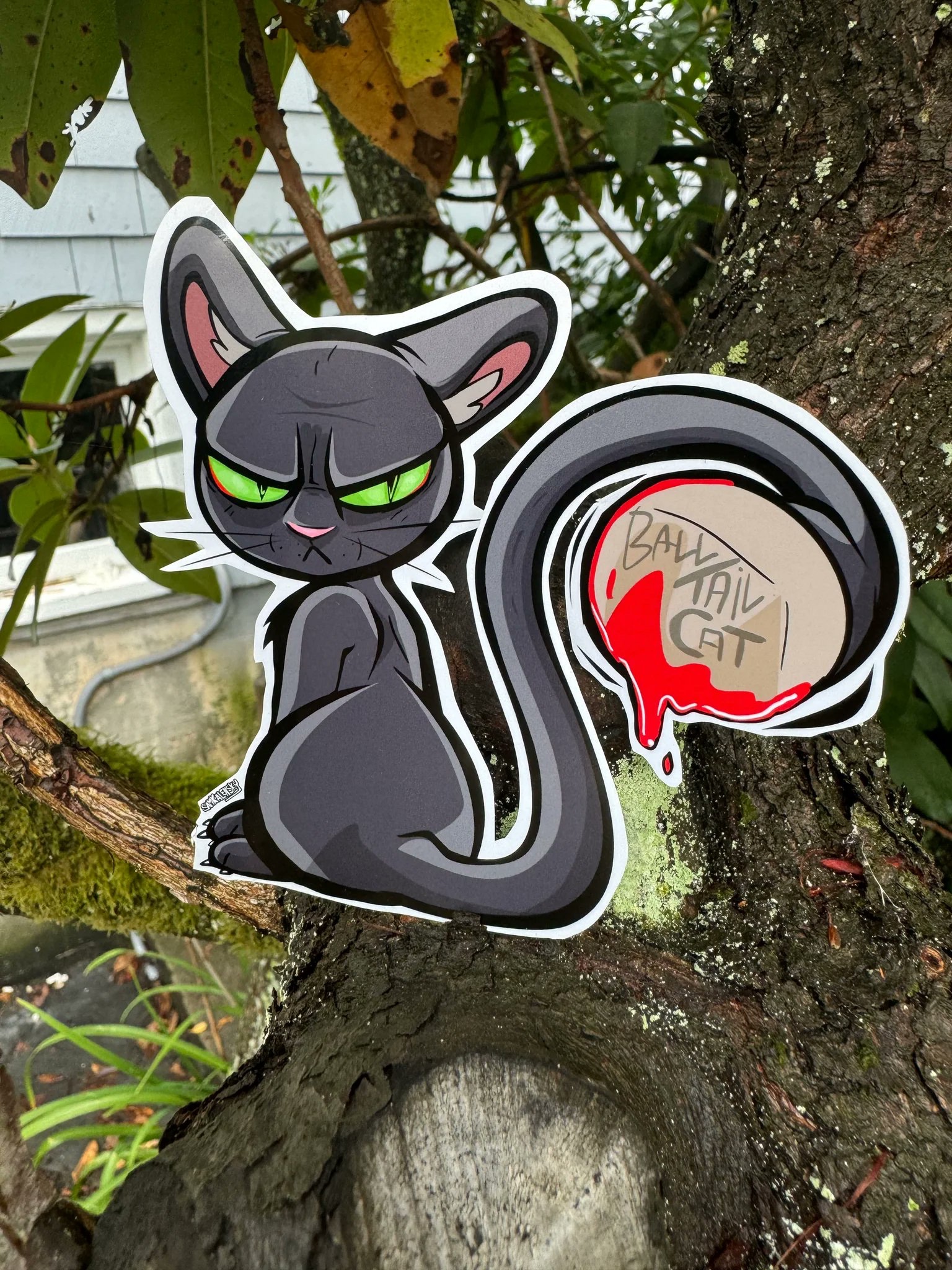 in general “Ball-tailed cats” are a sub category of the ‘Wampus cat’-family of feline fearsome critters, those which have been described erroneously & briefly throughout North American History, literature and folklore. Most where reported during the late 1800s-early 1900s. Although they behave similarly to a point where one might consider them all to be relatives to each other; each ones modus operandi, method of attack, as well as their locations differ and that should not be overlooked! – Depending on the case, such critters might also tip-toe into proper ‘Cryptid’ status, so some may also categorize as ‘Alien’ or ‘Phantom big cat’ sightings depending. âĒ A list of similarly described ‘ball and club tailed feline critters’ are as follows, you can find my sticker & biography fully detailing each by clicking through the “[X]”