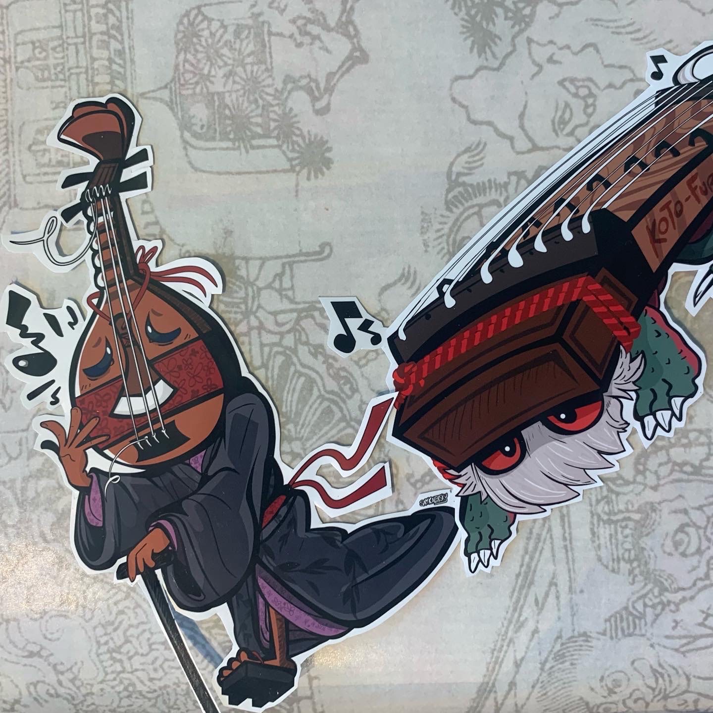 • About this yokai: A top of the line wooden Biwa, turned Tsukumogami which has come to life after about 100 years of neglect from its owners, mournful for not being played, it now wanders the streets as a blind zato, playin’ for tips.