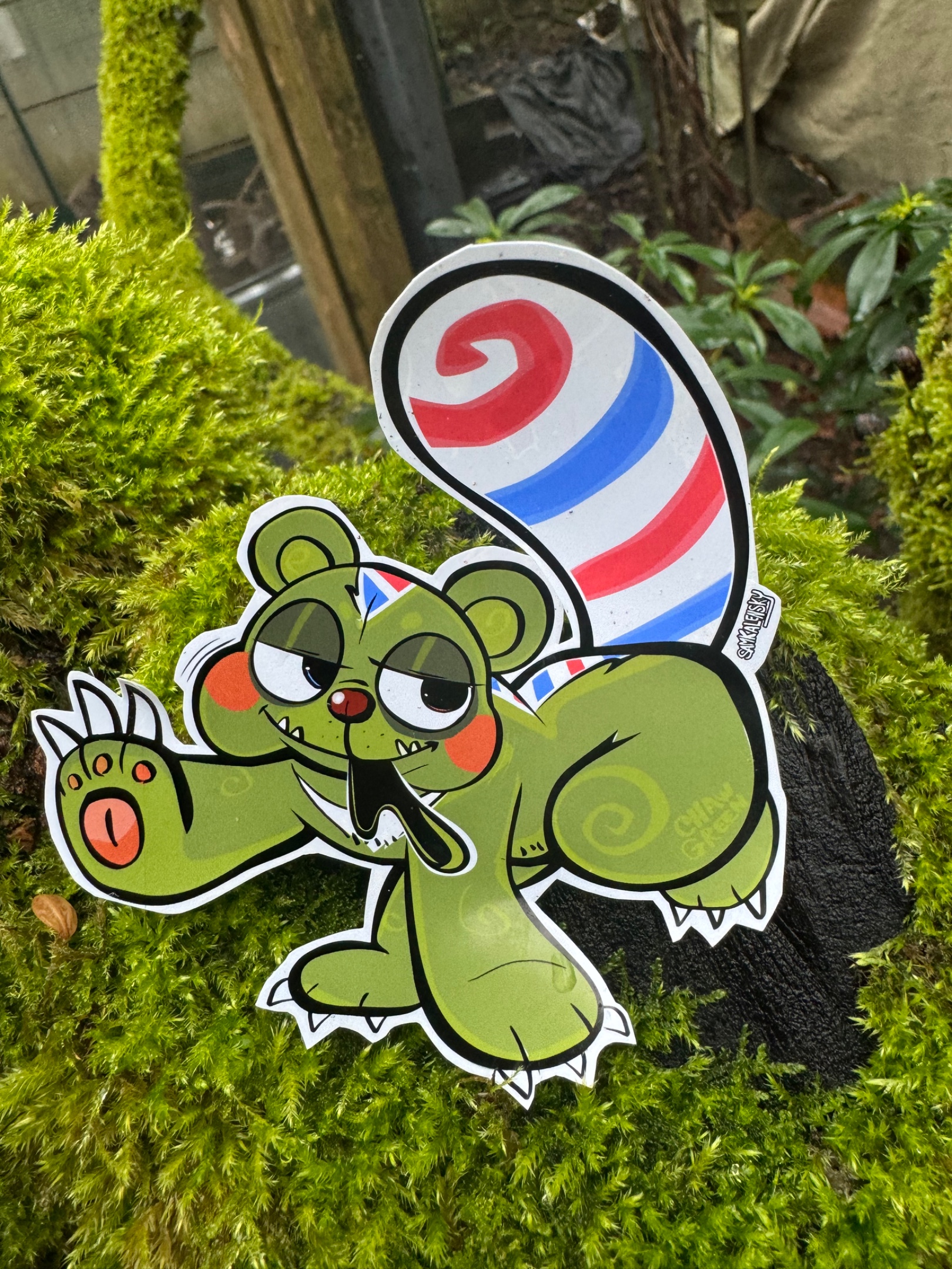 • About this critter: A varmint from the ozarks supposedly witnessed by unsuccessful hunters & busy lumbermen, described as resembling a “bear” but with an long striped tail which resembles a barbers-pole, said to steal tobacco from the bags of busy workers; it chews & spits it out just like a man would. Then it vanishes, leaving only a spittle-splat of gooey spit as the only evidence that the creature was ever there… Scouts used to try and hunt it in a sack or pillowcase, but no matter how they tried, they were always unsuccessful and left with an empty bag…