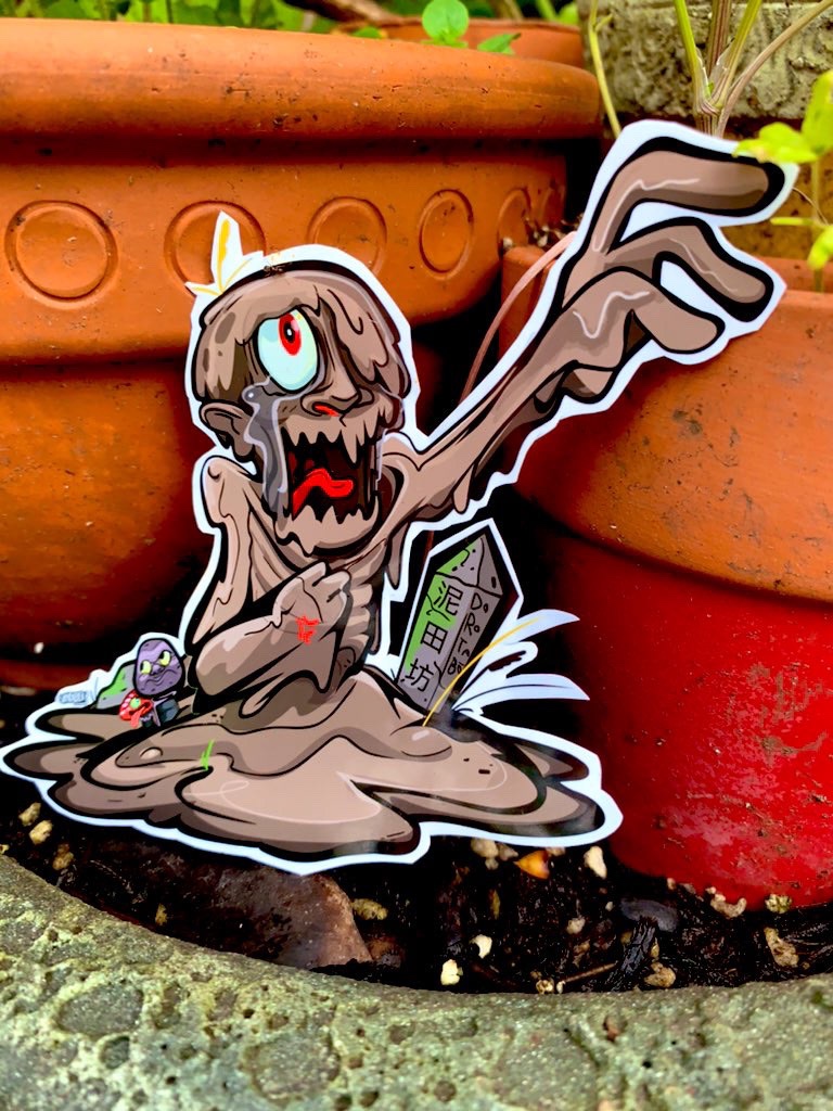 •About this Yokai: The Muddy spirit of a Poor hard working rice farmer who purchased a small rice paddy for his heirs: He worked day and night, weather it was cold, hot windy or rainy to make the plot of land fertile… he eventually passed away. – But then his children sold the farmland for booze money! 🍶- “Ingrates!! that was my lifes work! my legacy!!” – Now a dark figure rises from the mud every night reaching out and crying: “Ta-kase! Ta-kase!! ‘Till my Paddy…” — it craves revenge, but… I doubt their kids will ever visit again…