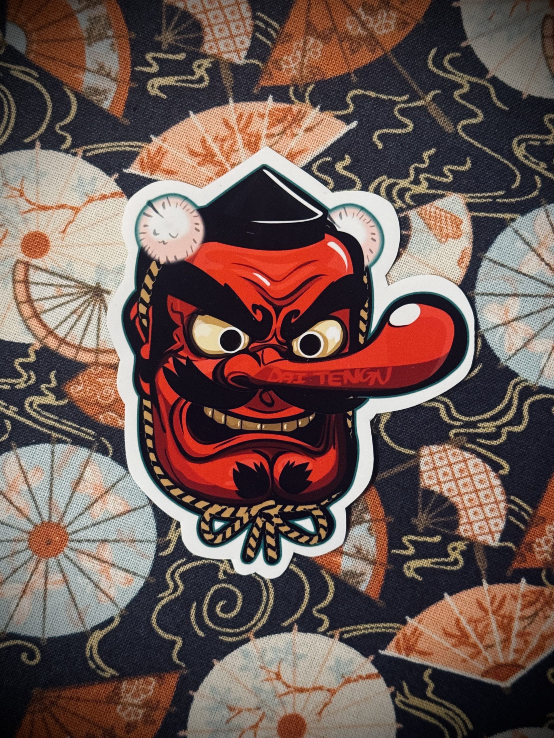 • About this mask: The iconic; stern red faced long nosed Dai-tengu are said to have been too vain to get into heaven but also too proud to go to hell. Tengu are noble, powerful frightening, avian yokai with powers rivalling that of a demigod. – its said they where experts in sword fighting are able to speak without moving their mouths and are able to teleport anywhere in the blink of an eye!! (Even into your dreams!) – Its said; the longer the nose the more powerful the tengu!