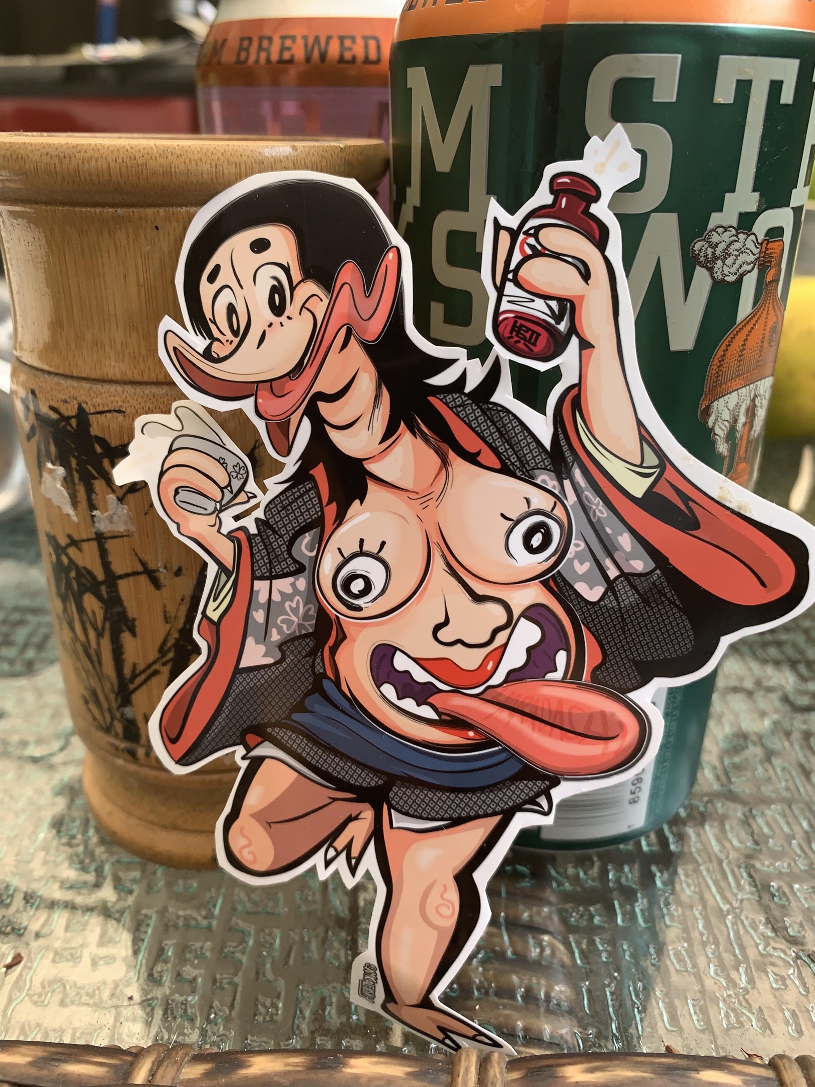 Sticker Art by @Samkalensky (yo thats me!) – Part of my Night parade of 100 Demons – Yokai & Japanese folklore sticker collection, weather-resistant 4″ Glossy sticker. Check my shop & follow @samkalensky for many more! – the 4th pics bg is “yokai storytime,” by the @mononoke_museum.