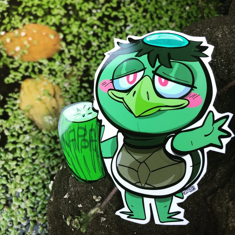 • About this Yokai: Kappa are strange little water imps that go by many names and appearances across Japanese folklore – Along side other greats such as the Tengu, Kitsune, Tanuki & Oni, Kappa are among the best known Yokai, its said that there is a unique variation of kappa in every prefecture across Japan! – Their names, Lore and appearances vary depending the region: They live close to lakes & rivers & will pray on children that get too close: as such these days they’re popularly used on “DANGER: don’t swim here signs” & drowning victims are often said to be (metaphorically) victims of kappa attacks. although they generally appear something like a turtle, they vary greatly in appearance, some kappa might not even look similar to what you might recognize as a ‘kappa’