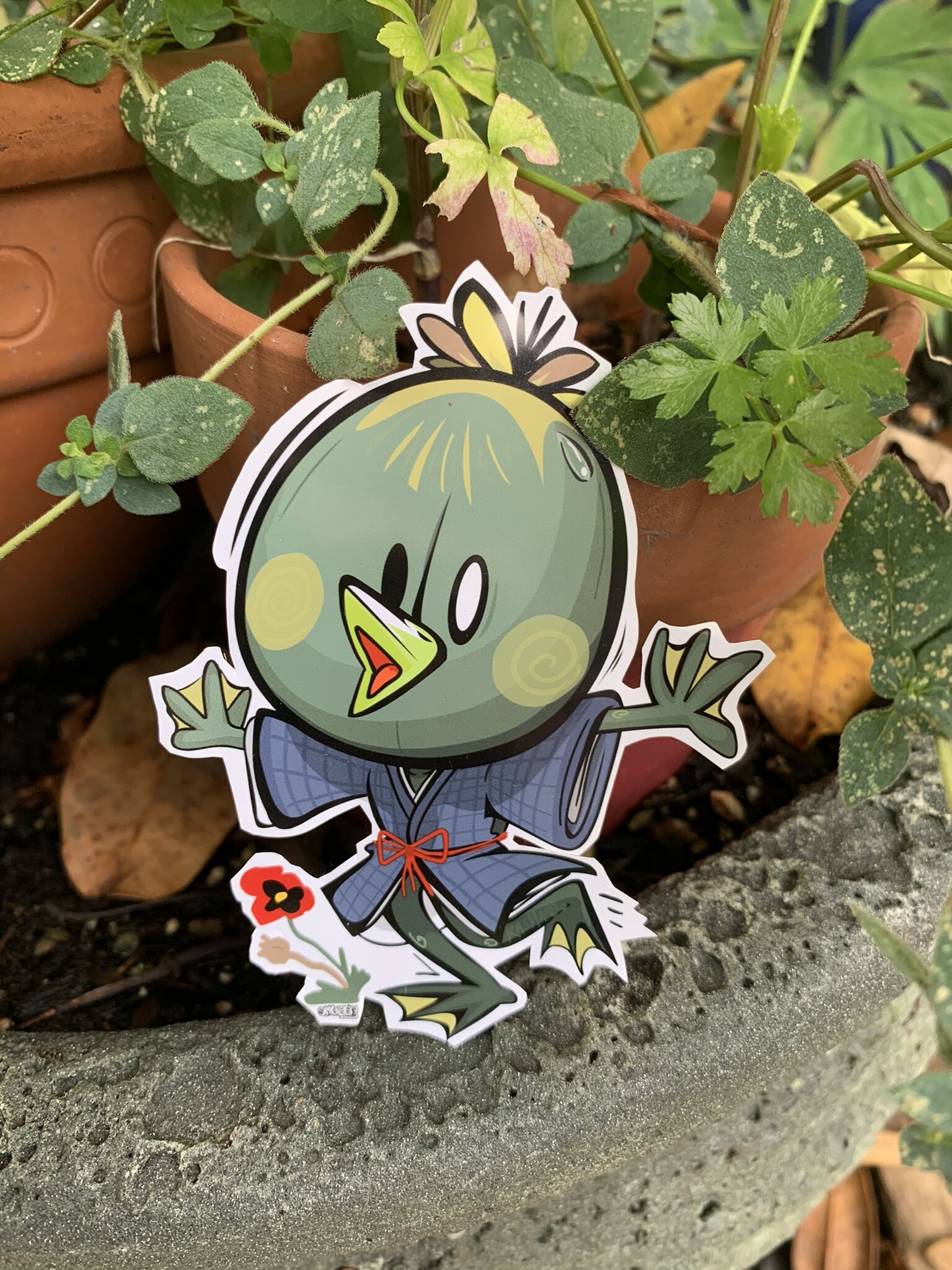 I decided to make mine a bit more “ripe” green because it makes it look a bit more kappa like…illustrations of this one are rare but its either exactly like mizukis (or like a normal kappa.) Regardless of whatever they’re actually supposed to be related they’re usually invisible so it’s fine to use your imagination.