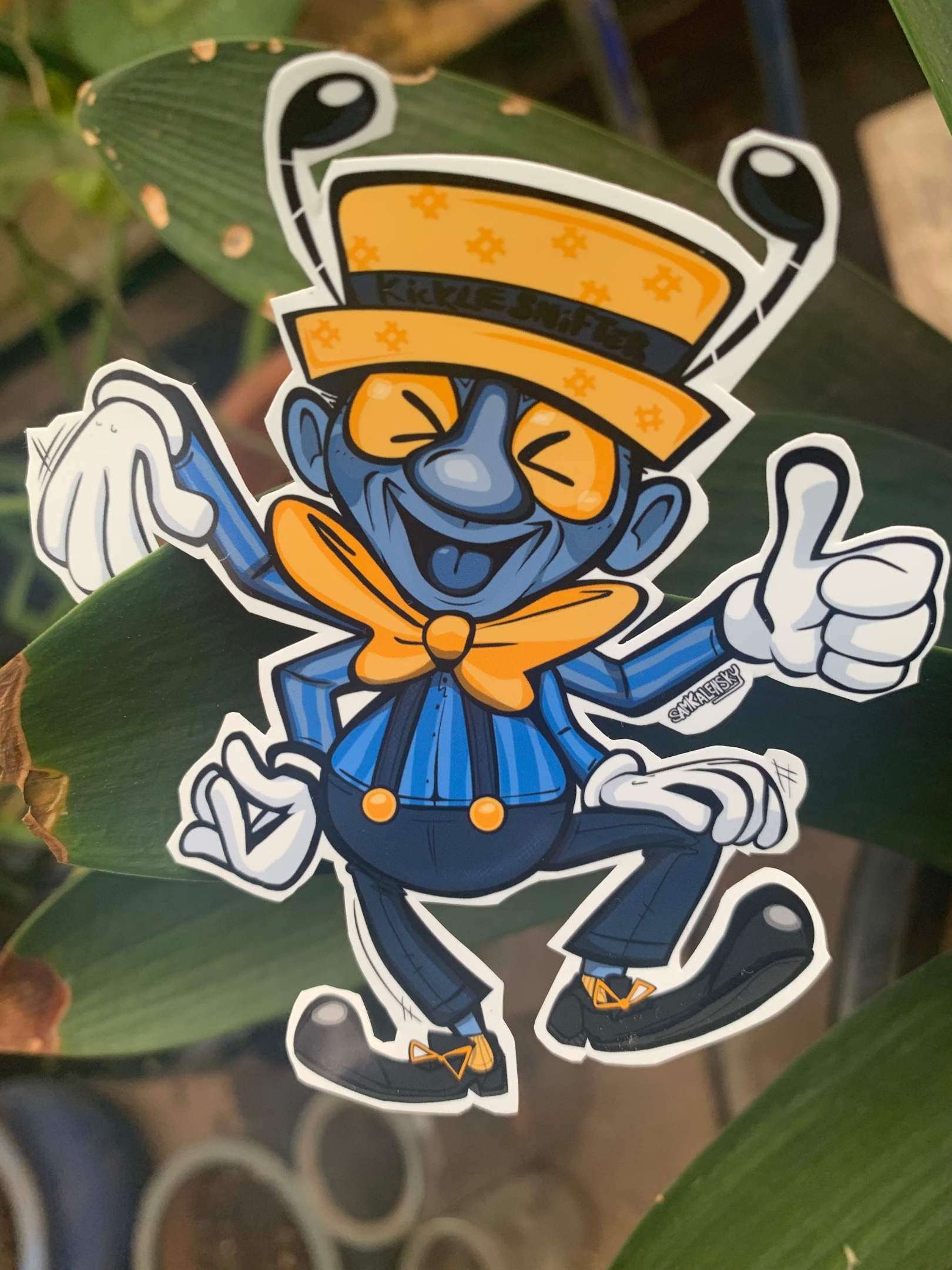 …To try and search for the ‘defining origin’ of ‘Kicklesnifters’ has been a proverbial snipe hunt indeed, when i first read the above, frusterated, I nearly classified them as: “A type of gremlin which causes researchers to go off on frustrating tangents that cost them months of headspace: as you go, they laugh at you from someplace unknown.” -that could be true… Almost… But to say that would be just as confusing for future readers and could be further misinterpreted or confused. – So; I quickly regained my sanity and wrote about my adventure in research: which you have just reached the end of!! Anyway…. Hope you all enjoy the sticker and my decent into the madness that is the “History of Kicklesnifters.”