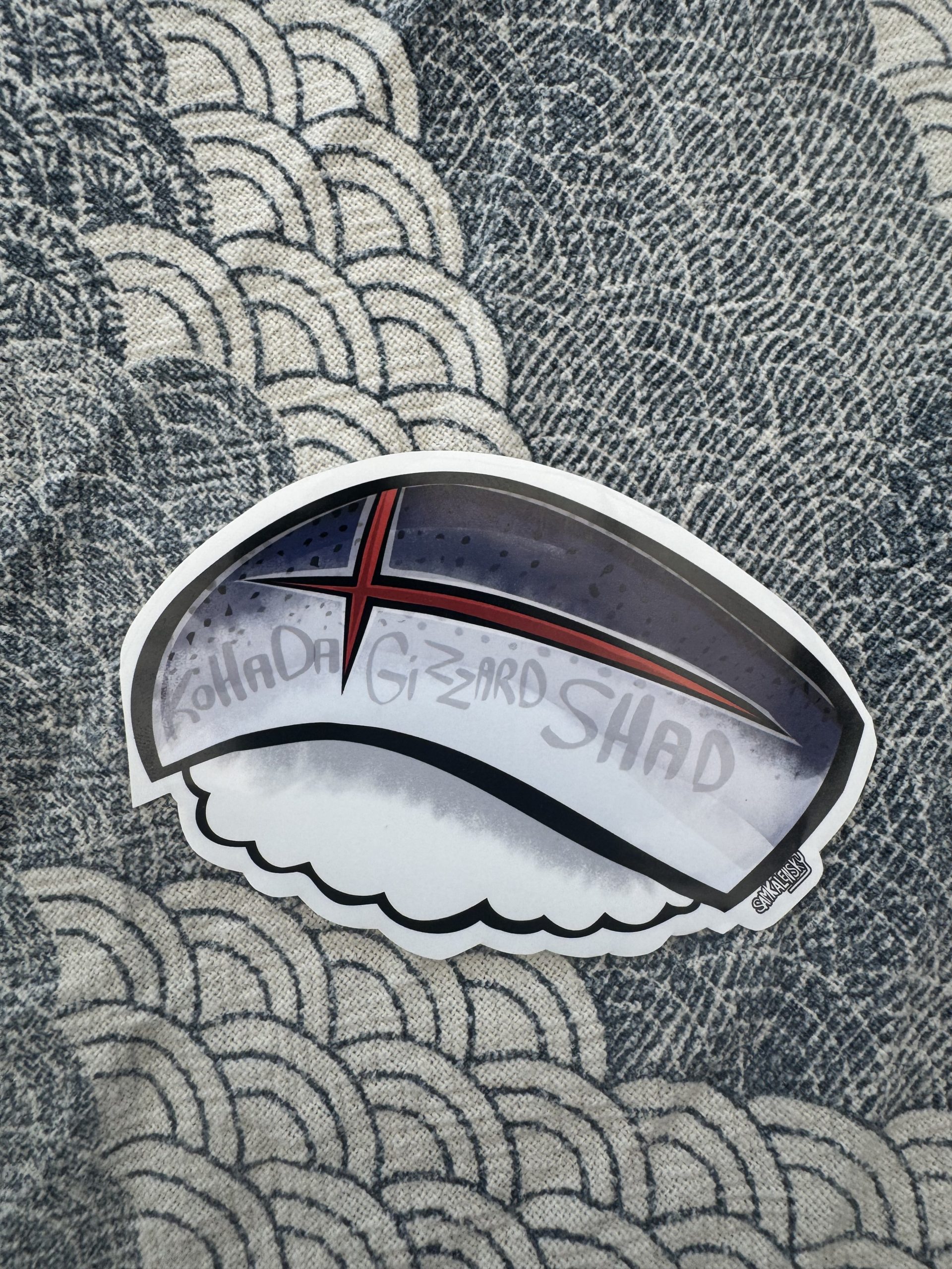 • About this fish: Often considered to be the most delicious of the silver skinned fish and the definitive test of a chefs know -ow. When prepared properly the taste is rich and fatty, but also buttery & subtly bitter-sweet. (Though the overall taste might change depending on the size of the fish/time of year you eat it at. it’s another “Suessho fish” with multiple names dependant on the age/size of the fish.) Sadly, shad generally seems to be missing from most North American menus, but in Japan; it’s one of the most iconic sushi picks among gourmets and casual sushi foodies alike. The way the fish is presented & prepared is said to be the definitive example of both the skill & creativity of the chef, as well as good indicator of the quality of the restaurant in general. – This is because Shad is always specially seasoned before serving; sprinkled with salt, marinated in vinegar & then served the following day! It’s quite the production, This seasoning requires proficient skill, timing & know how to get it tasting just so. You’ll also often see fancy cutting preparations for this fish. – In the summer time; several filets of younger shad may also be served on a single piece of nigiri at once, The fish’s meat may be folded to criss-cross over itself creating a very fancy look. – The variety of ways to prepare and serve kohada is endless, often high-end restaurants have a ‘signature cut or look’ to how they choose to present it. (the criss cross cut is iconic so chose that for mine.)- Incidentally, The English name of “Gizzard shad” is said to be named as such because the fish supposedly has a ‘Gizzard’ in its stomach (Much like a chicken does) The fish is said to digest stuff by eating sand & small pebbles! (But, does it actually work like that? I dunno, I’m no biologist, just an artist and an arm-chair fish nerd!)