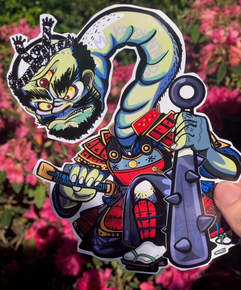 Sticker Art by @Samkalensky (yo thats me!) – Part of my Night parade of 100 Demons – Yokai & Japanese folklore sticker collection, weather-resistant 4″ Glossy sticker. Check my shop & follow @samkalensky for many more! – [Last 2 bg pics inspired mine, from the book “Yokai Storyland” part of the yumoto koichi collection and @mononoke_museum yokai museum]