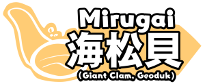 - Mirugai – 海松貝 – (Giant Clam, Geoduk; “Shiroumiru” “Mirukai” “Namigai”)