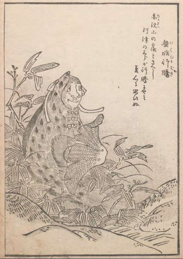 Sekien wrote next to nothing about Muku-Mukabaki itself; so details about the yokai and the nature of whatever it does, are indeed quite hazy!! I like to think it has the temperament of a deer because it seems to just be sitting there, admiring the view. But then again I couldn't help but poinnt out that the hat beside it in Toriyama’s illustration matches the hats that the assassins are wearing in the later Utagawa Hiroshige print! Did Muku-Mukabaki take revenge on his owner’s killers by snatching their hats?? Was it the common uniform for the enemy clan?? Did he just really like the hat?? Is it really a hat? its difficult to say for certain.