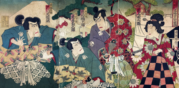 [Kabuki actors dressed as the main characters of Soga Monogatari 1893.]
