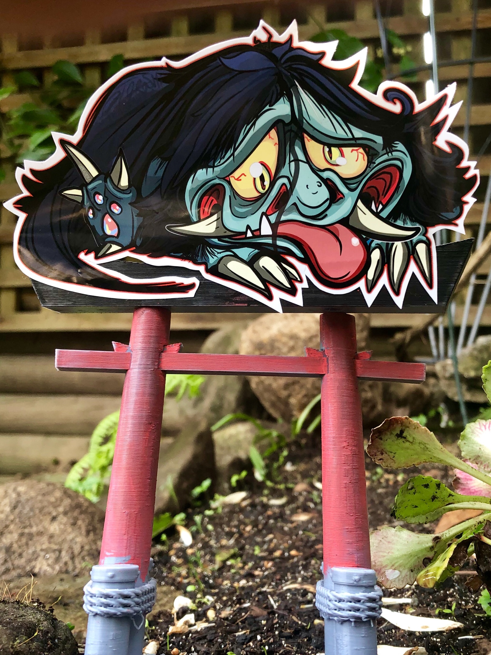 [Sticker Art by @Samkalensky (yo, thats me!) – Part of my Night parade of 100 Demons – Yokai & Japanese folklore sticker collection, weather-resistant 4″ Glossy sticker. Check my shop & follow @samkalensky for many more! (Please note: 3D torigate is not included ⛩ however the Torii Gate sticker (3rd pic) is optional!)]