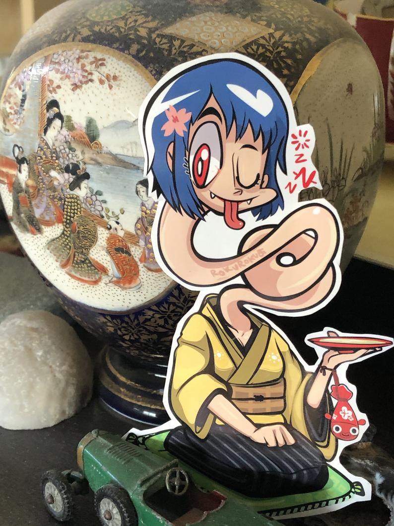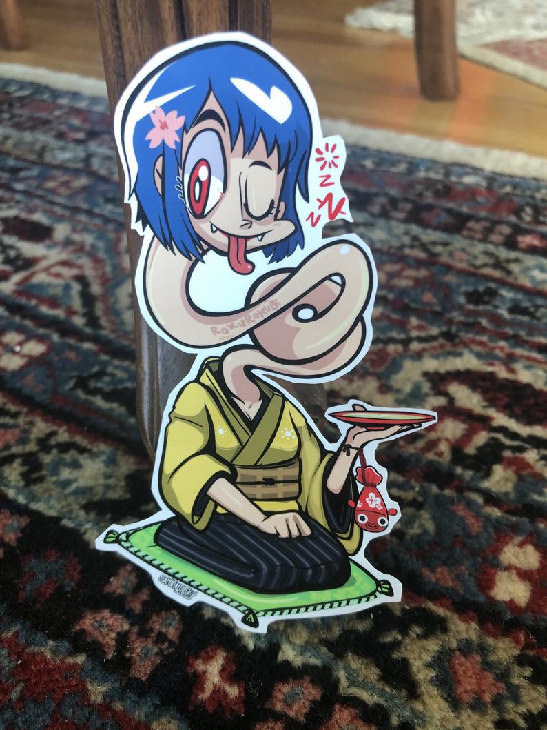 Sticker Art by @Samkalensky (yo thats me!) – Part of my Night parade of 100 Demons – Yokai & Japanese folklore sticker collection, weather-resistant 4″ Glossy sticker. Check my shop & follow @samkalensky for many more! – last pic is from