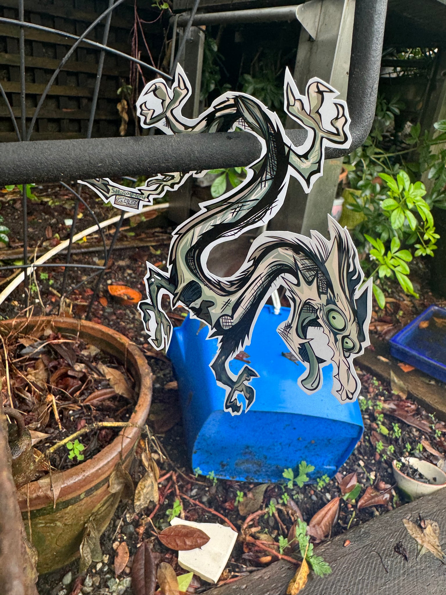 • About this Yokai: An ancient tattered cloth, towel or stripped kitchen rag left to rot in dirty, humid conditions, particularly in abandoned or uninhabited places, until it came to life as a tsukumogami; twisting itself into the shape of a tiny dragon. It flies about at night, harassing maids & kitchen crew and wrapping its slimy body around their faces, causing them to pass out! It has been known to suffocate those without any virtue or morals to death!