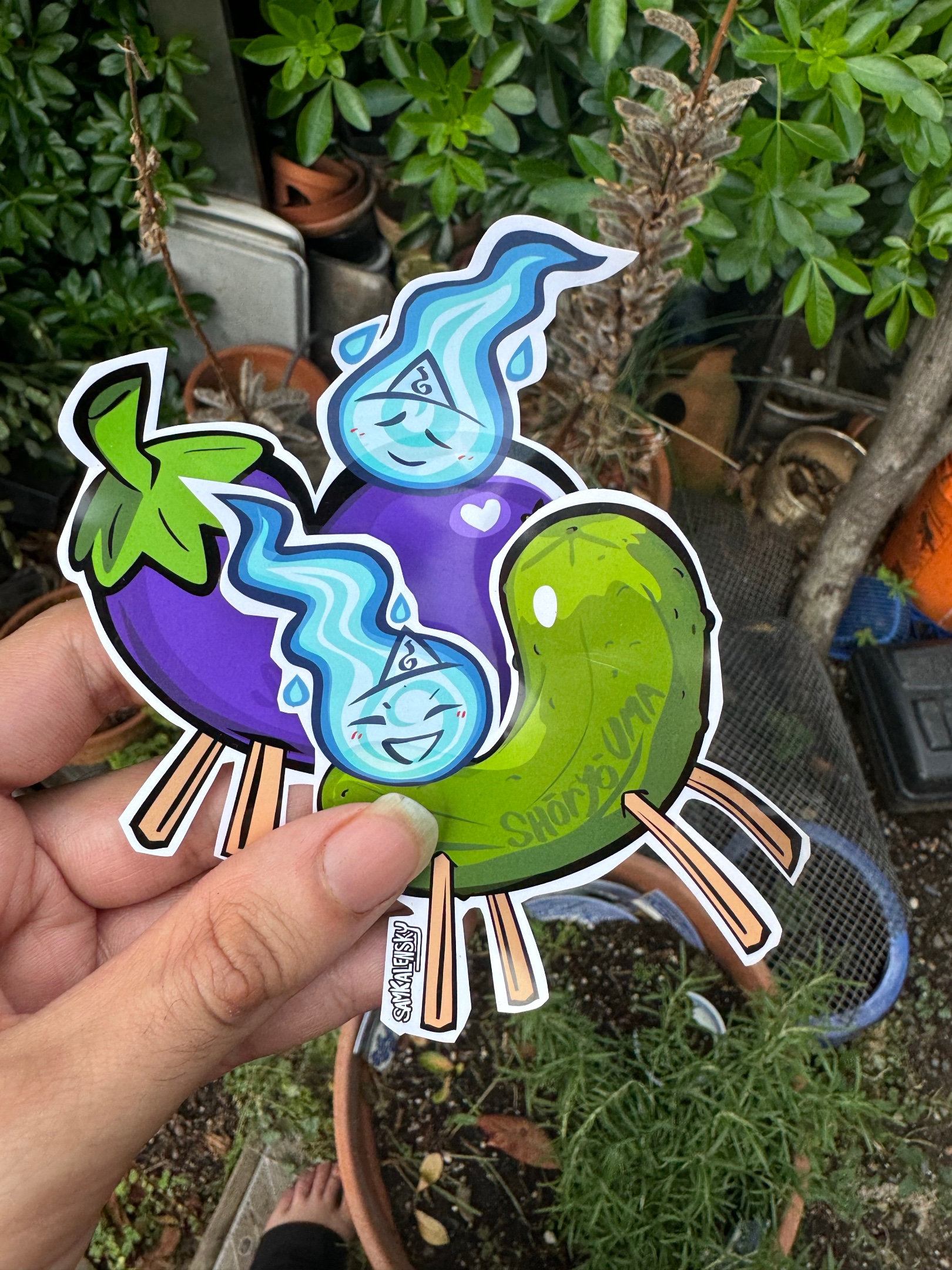 • About: An offering for the 3 day long Obon festival, held annually mid July (or August.) these “Shoryo-Uma & Shoryo-Ushi” are said to be the vehicles in which your families ancestors arrive during the celebration (& depart during the subsequent memorials.) – “A speedy cucumber horse for a swift delivery home from the afterlife, and a sturdy eggplant ox for a leisurely trip back with plenty of gifts.” – The Eggplant cow and Cucumber horse are Customarily made by kids with cut up chopsticks and displayed as part of the families Butsudan (or “Shoyro-dana.”) spiritual alters along side a meal, lanterns and snacks. otherwise they are often displayed near the front porch (accompanied by incense) to help guide the ancestors back home during the holidays. – It’s said that you should place them facing inwards (towards the home) to welcome your ancestors in, and outward (away from the home) when its time for them to go. – [Overall This Custom of course varies depending on region & religion. Different vegetables such as gourds, sugarcane or others are also used. In Western Japan, the lantern festival is much more common during this period!]