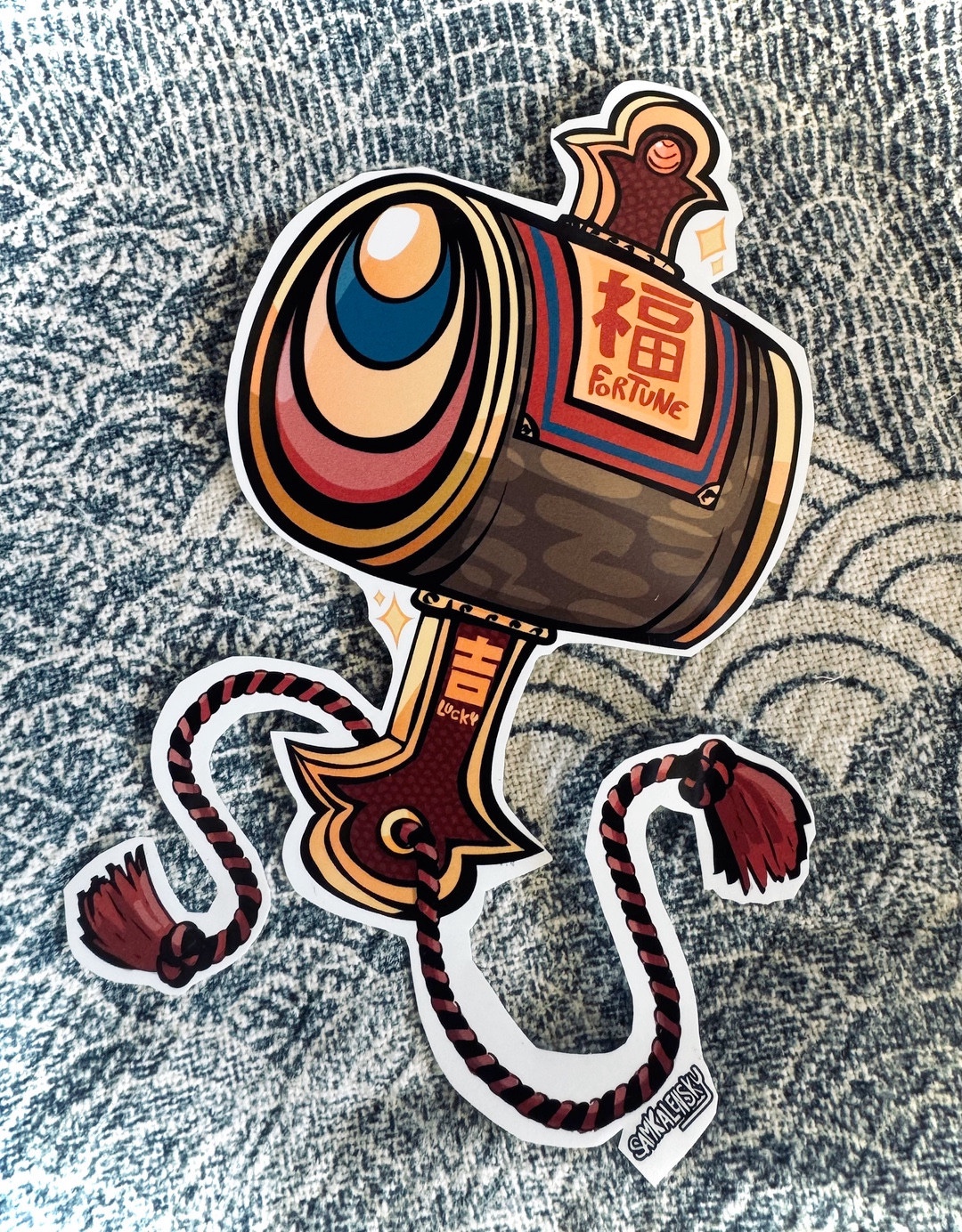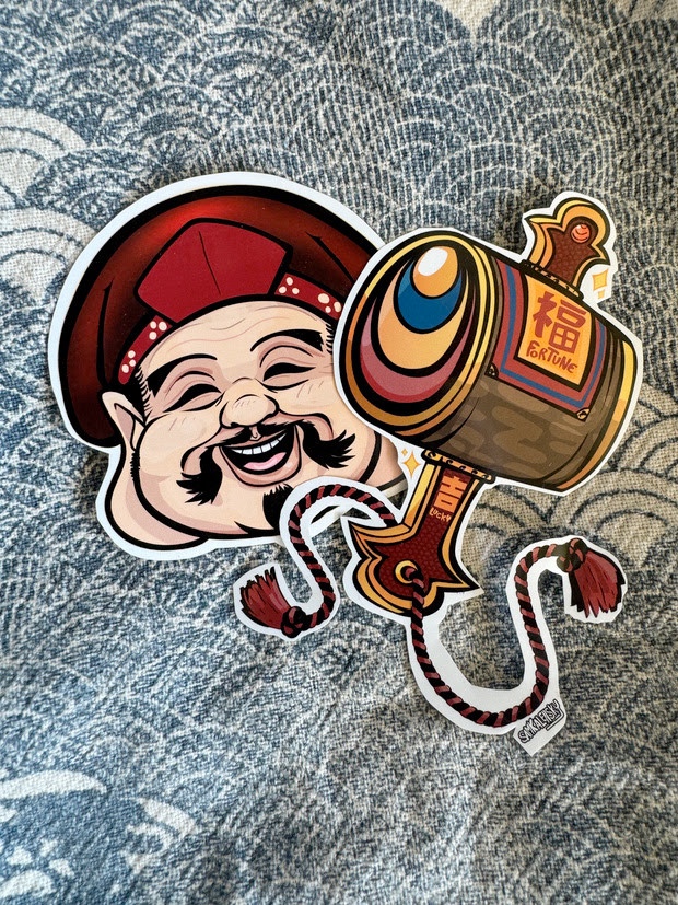 [Art by Samkalensky part of my engimono lucky charms sticker collection! follow & support for many more! (NOTE: daikoku mask sticker is an optional add on.)