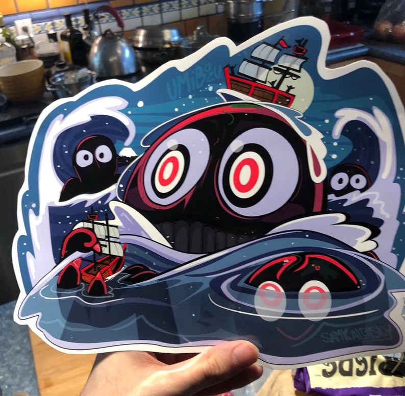 [Art Sticker by @Samkalensky (yo, thats me!) – Part of my Night parade of 100 Demons – Yokai & Japanese folklore sticker collection, weather-resistant 4″ sticker. Check my shop @samkalensky & support for many more]