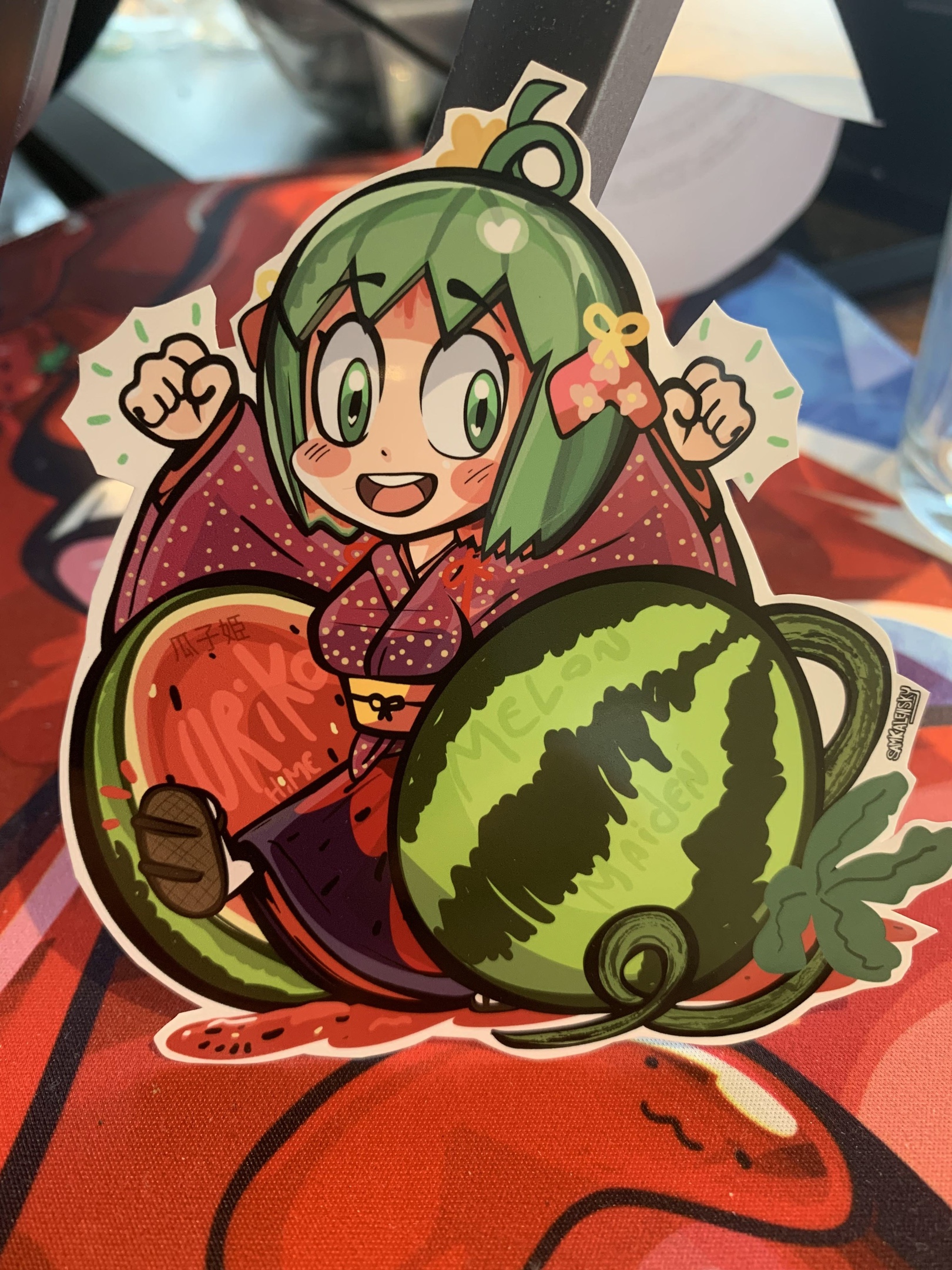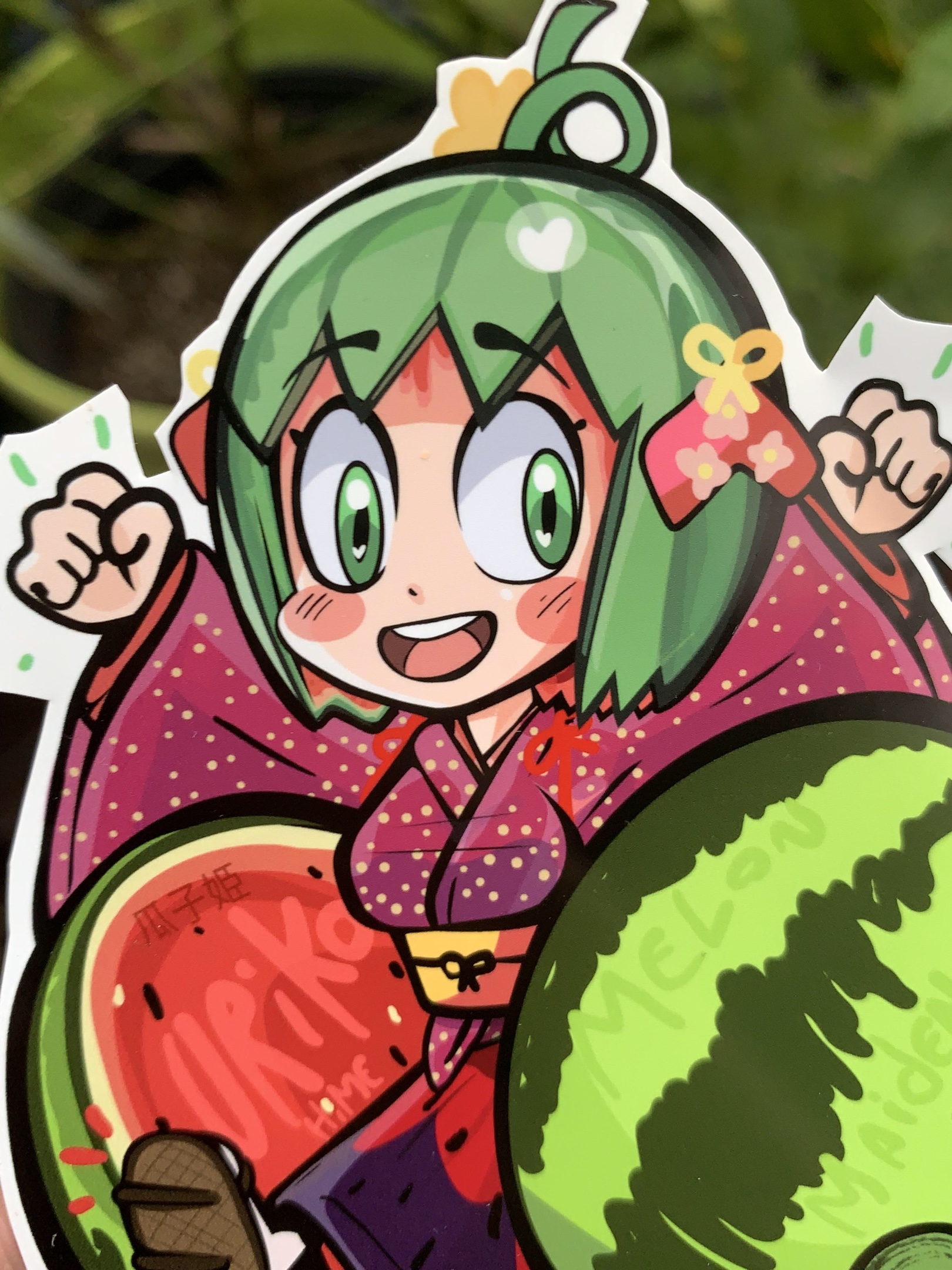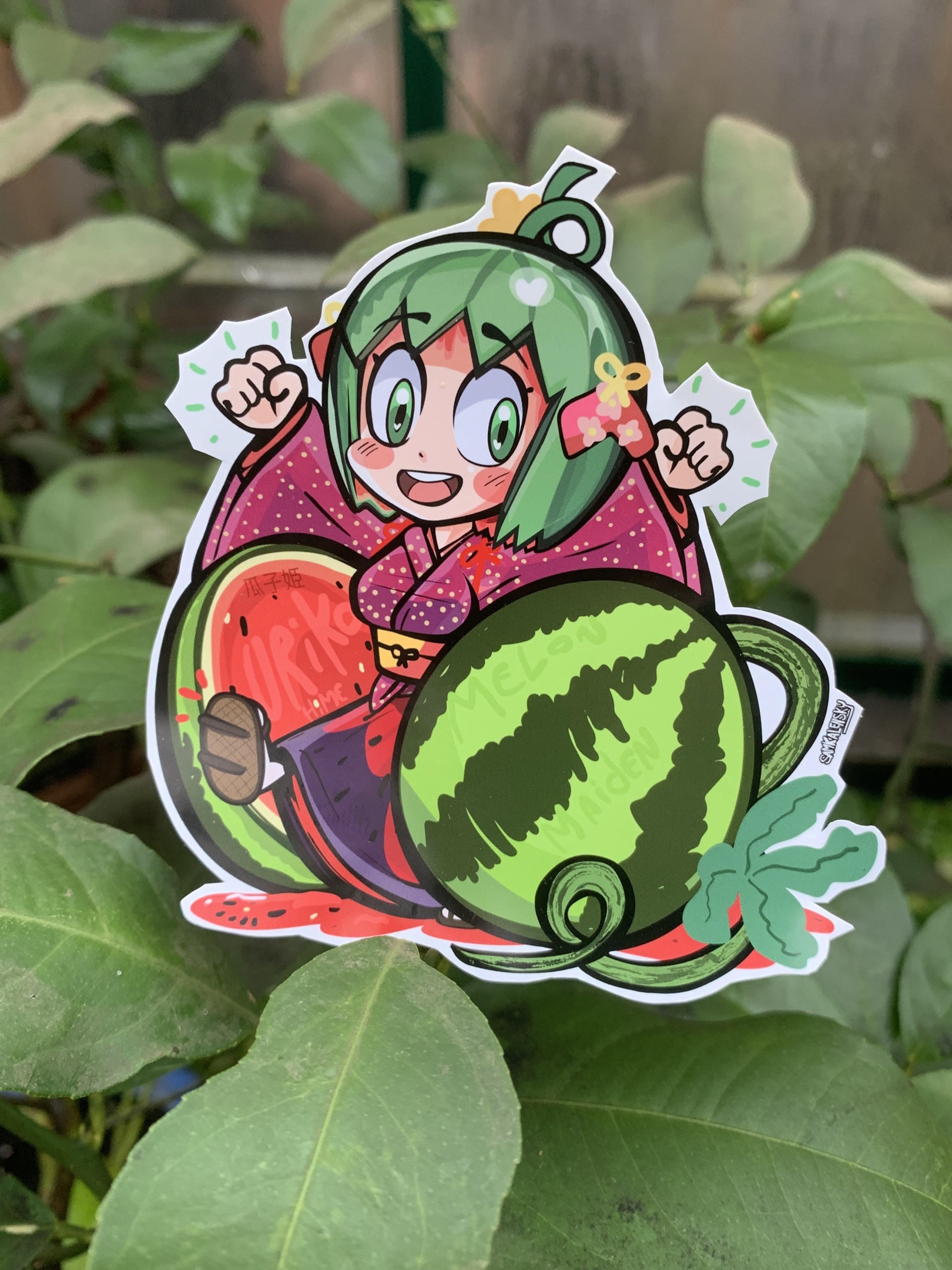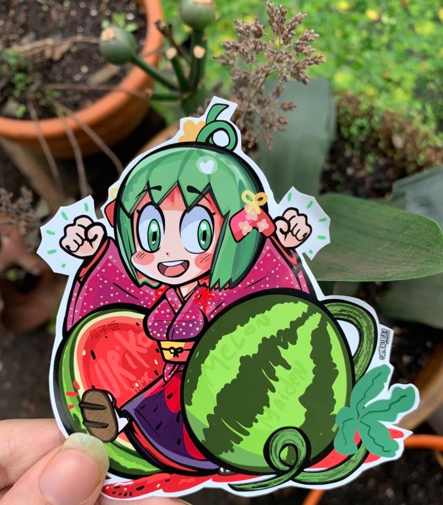 Obviously it’s a parallel to momotaro & kaguyahime in a lot of ways (the main being a that she’s born from a fruit.) (poor uriko doesn’t seem to be as lucky as her counterparts.) so I designed her sticker to pair nicely with my earlier Momotaro! – yay!
