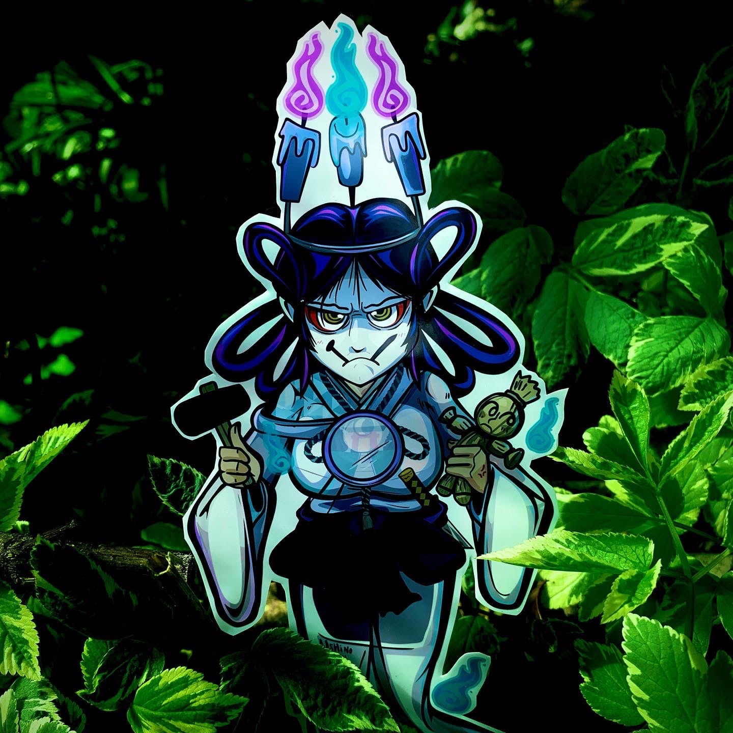 • About this Curse: An illegal, dark magic ritual often performed by jealous or scorned women at Kyoto shrines, its performed around 1-3 AM (the hour of the ox.) when most people would be asleep. – Wearing all white with a candle lit, iron trivet on your head, a comb in your mouth, and a sacred shinto mirror hung from your neck. With blazing hatred in your heart: Nail A straw effigy (representing the intended victim to a sacred tree. Repeat this for 7 nights without being caught; If you succeed, your victim will die. – But! – If anyone else observed you or the ritual, the effects will either be nullified or worse, turned back on the person casting the spell. – So its important you do not get caught (or accidentally witness someone else in the act, else they’ll hunt you down!! no witnesses. 💀) – An old saying goes: “If you curse someone, best to dig two graves…”