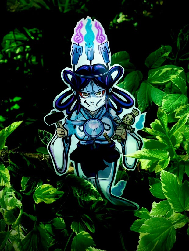 • [Art sticker by SamKalensky part of my haunted dolls & yokai collection of stickers. follow and support for more! ] •