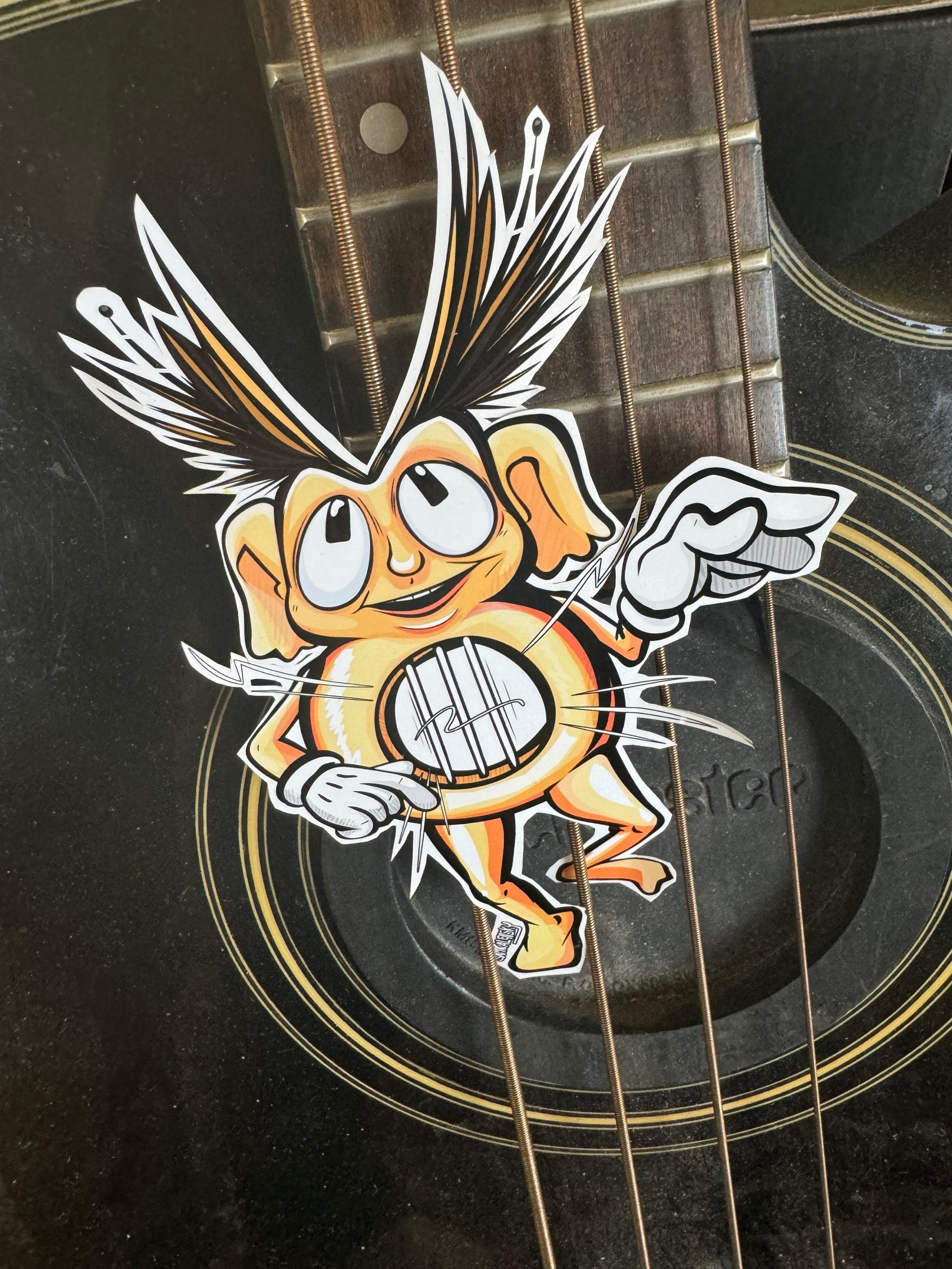 Strangely; Triangle-shaped holes seem to be the more popular shape for gremlins of this type to assume in earlier depictions (Though Aeolian wind harps are a thing i’m unware of any triangular wind instruments) so perhaps I’m missing something? or maybe that was the joke? hard to say! ) â Perhaps solane gave it a harp-like depiction in reference to the Bandsman insignia? (Emblems and badges worn by musicians in military bands, most frequently depicted as a 3 or 4 stringed harp!) hard to say for certain though.