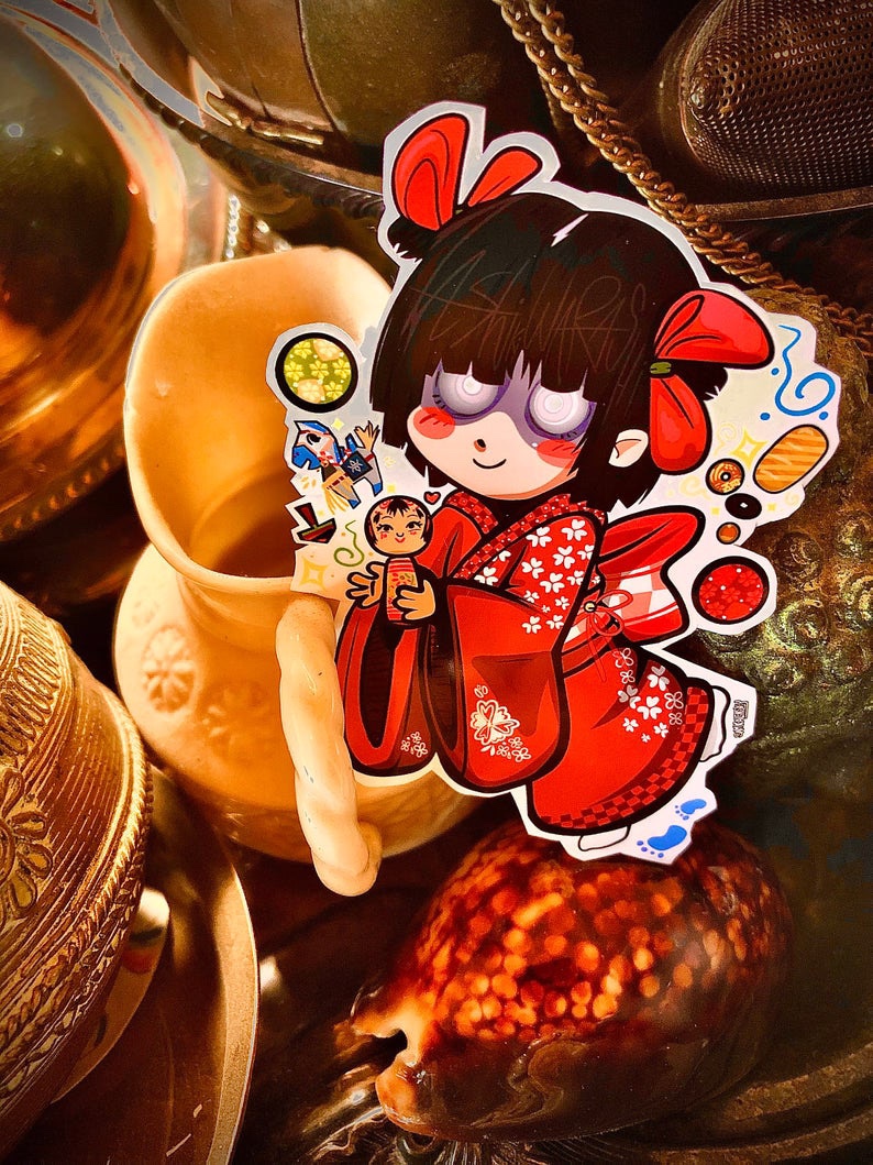 Sticker Art by @Samkalensky (yo thats me!) – Part of my Night parade of 100 Demons – Yokai & Japanese folklore sticker collection, weather-resistant 4″ Glossy sticker. Check my shop & follow @samkalensky for many more! –